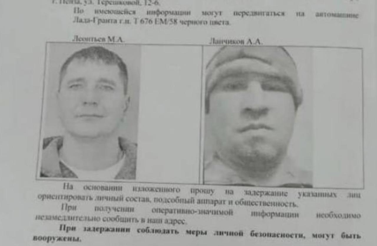 ГосСМИ публиковали ориентировку на подозреваемых — 41-летнего Михаила Леонтьева и 39-летнего Алексея Ланчикова. Оба были ранее судимы за убийства и другие тяжкие преступления. По данным источника «ВЧК-ОГПУ», в 2022 году их завербовала в колониях ЧВК «Вагнер» для участия в войне против Украины. По истечении контрактов они вернулись на гражданку, как минимум один из них получил помилование от президента Владимира Путина. Источник уточнил, что это был Леонтьев, его же застрелили полицейские.