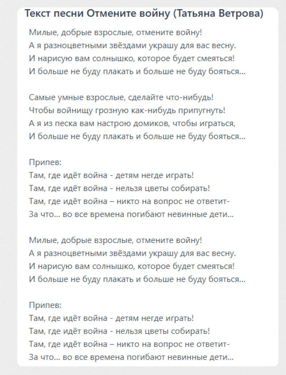 В Уссурийске суд оштрафовал воспитательницу лицея РЖД Дину Анищик на 30 тысяч рублей за дискредитацию армии из-за детской постановки ко Дню Победы. Её воспитанники исполнили песню «Милые, добрые взрослые, отмените войну!» и показали плакаты «Нет войне!» на русском, английском и украинском языках. Полиция посчитала выступление призывом прекратить СВО, пишут СМИ.